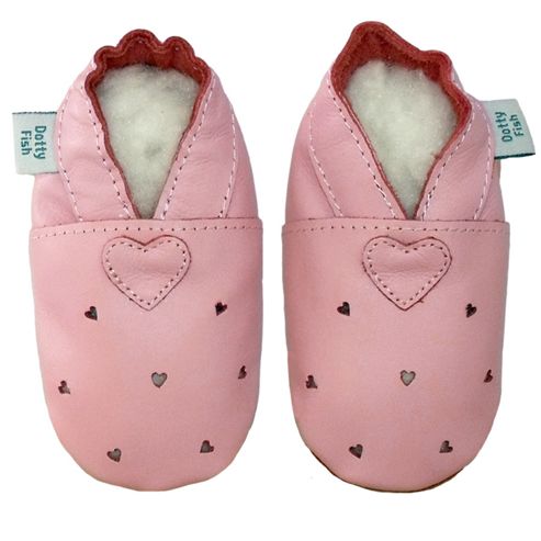 Image Name: Dotty Fish Soft Leather Baby Shoe - Pink Cut Out Hearts - Newborn